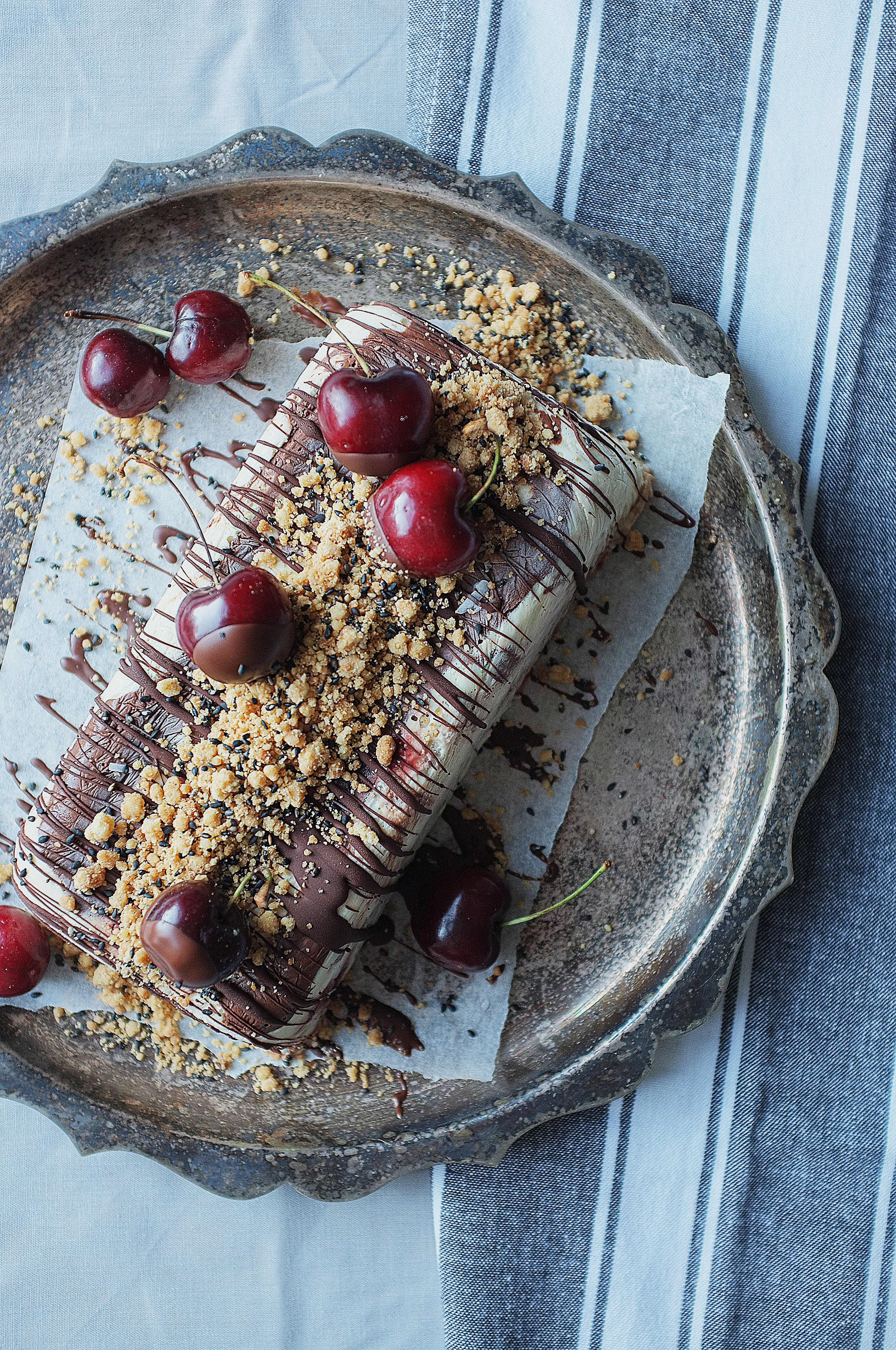 We’ve been enjoying a very unusual bout of beautiful hot weather here in the UK, so today’s recipe is an iced one. I served this up for my boyfriends birthday (after he broke the news to me that he didn’t want a cake- yeah, sacrilege I know) and although it requires a little more effort to make than a simple sponge, the creamy, indulgent and slightly bittersweet (thanks to the tahini and very dark chocolate) result is well worth it.