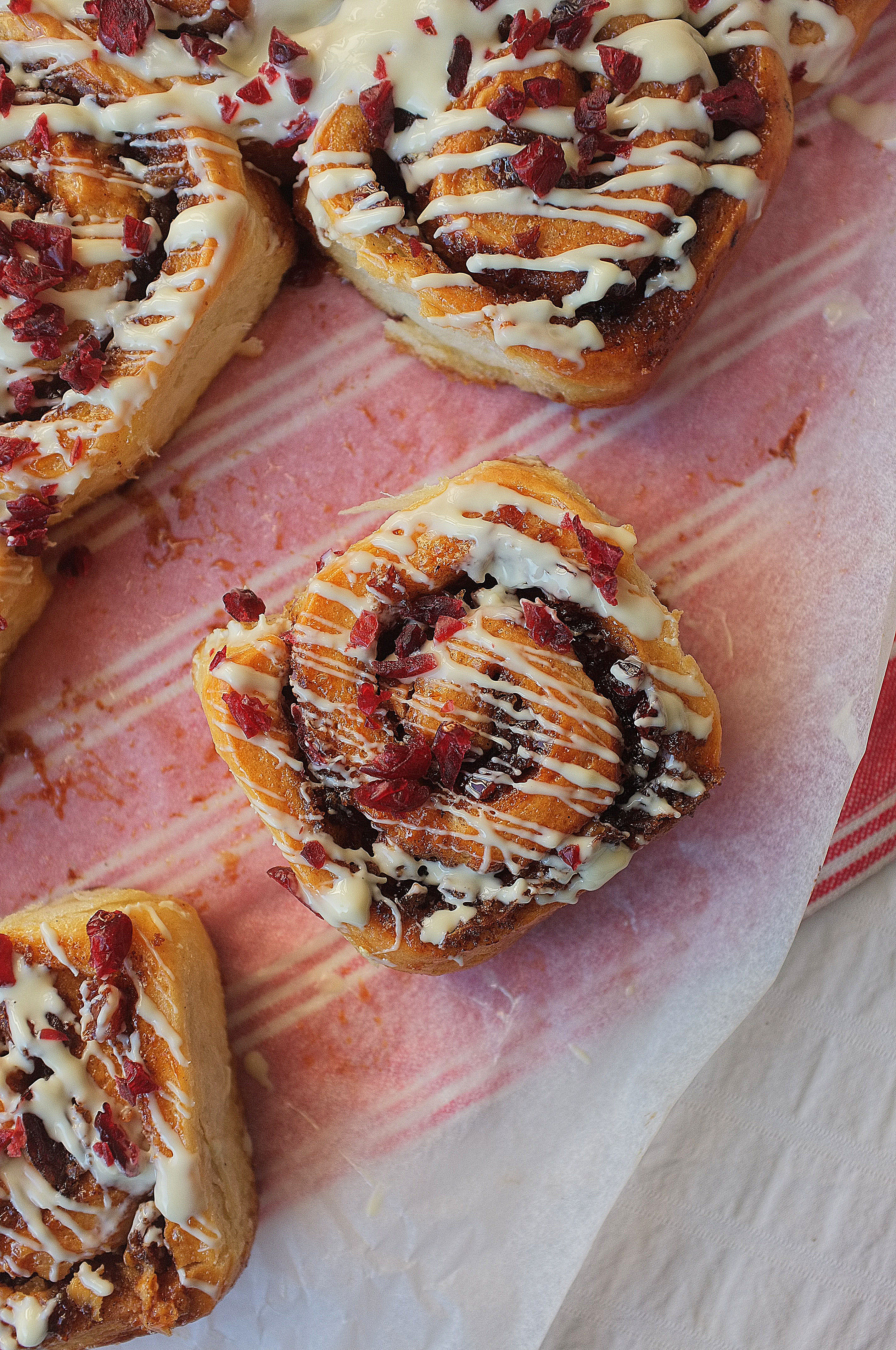 In the words of Jez (Peep Show reference, sorry if you don’t watch it), ‘I am a Christmassist’. I love everything associated this time of year; heady spices, mulled anything, twinkling lights, the smell of fir, infinite chocolate, roll necks and nostalgic films. With that in mind, I’ve got lots of festive recipes lined up for December, kicking off with these spiced buns, packed full of orange-soaked fruit and white chocolate- delicious warm from the oven with a strong coffee.