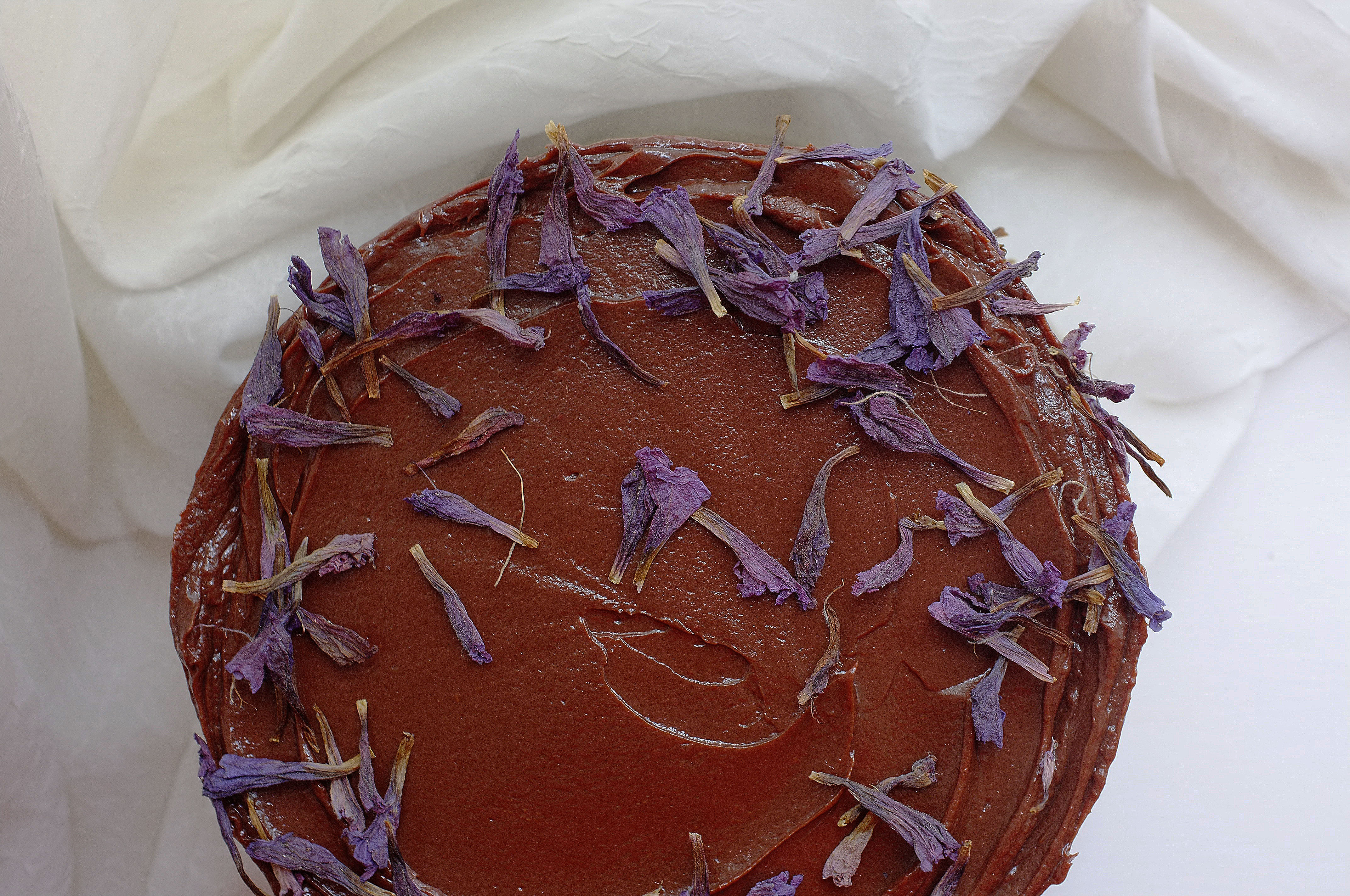 - For the filling, roughly chop the chocolate and place in a heatproof bowl along with the vegan butter. Set aside. Put the Oatly cream, maple, salt and miso paste in a saucepan and, stirring often, heat to just below boiling point. Pour this mixture over the chocolate and butter and allow it to sit for a moment before stirring together to form a smooth glossy ganache. Let this cool then pour it over the chilled base. Transfer to the fridge again and chill for another hour or until set.