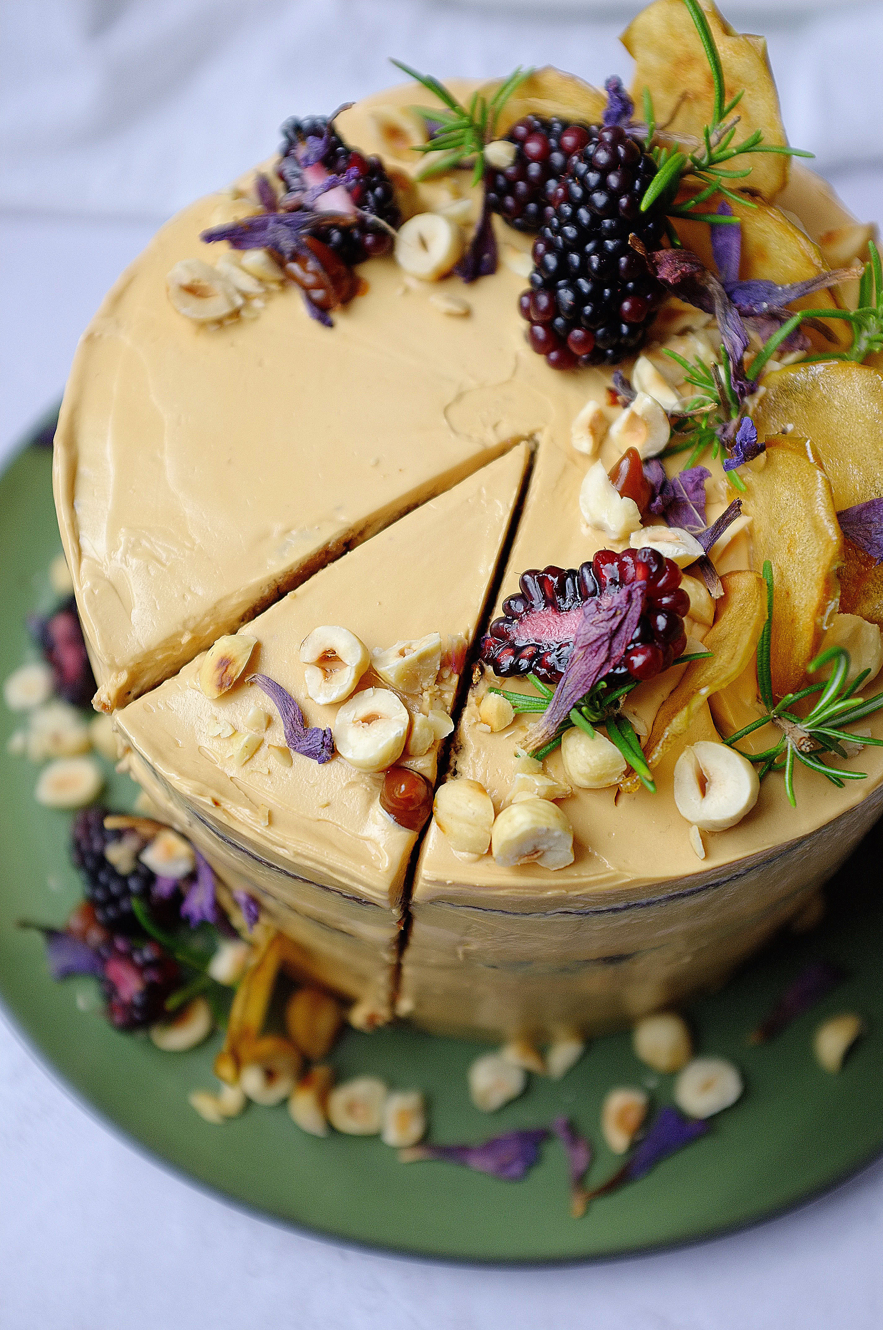 - Slice up the tart and serve with shards of sesame caramel and a sprinkling of sea salt.