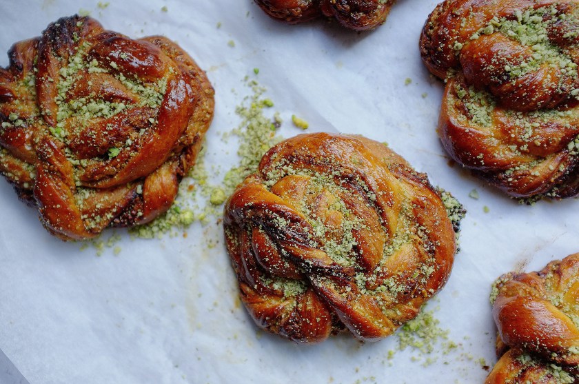 Cherry, super-sweet white chocolate, earthy pistachio; a pretty fool proof combination of flavours which marry together beautifully in these enriched sweet buns. I’ve added Arabica’s Cherry Molasses which they kindly gifted to me a couple of weeks back, and it brings a real tang to the overall flavour- delicious! I couldn’t resist adding cardamom to these as well; not only is it my favourite spice but it pairs really well with all three base flavours.