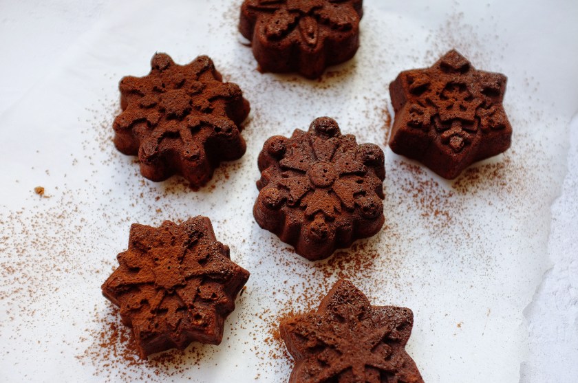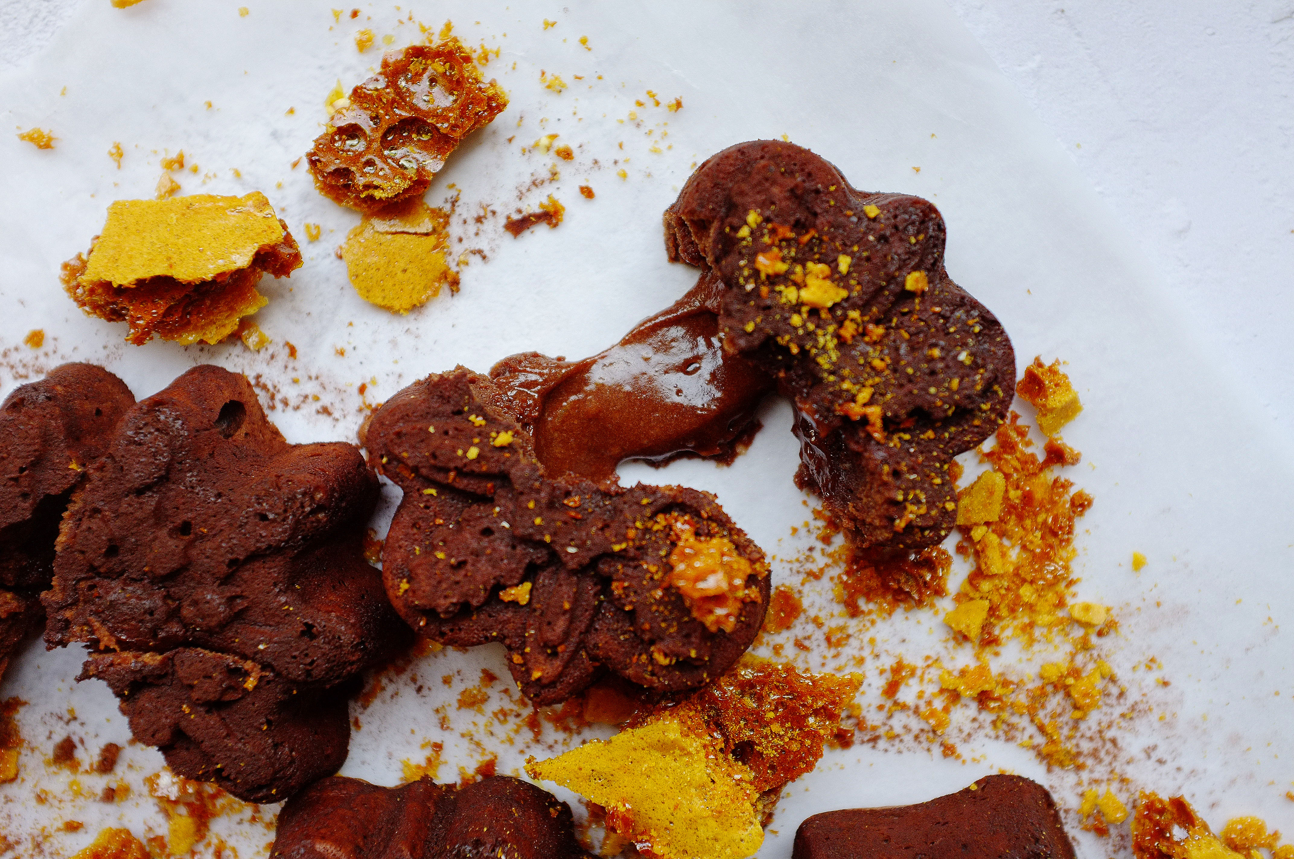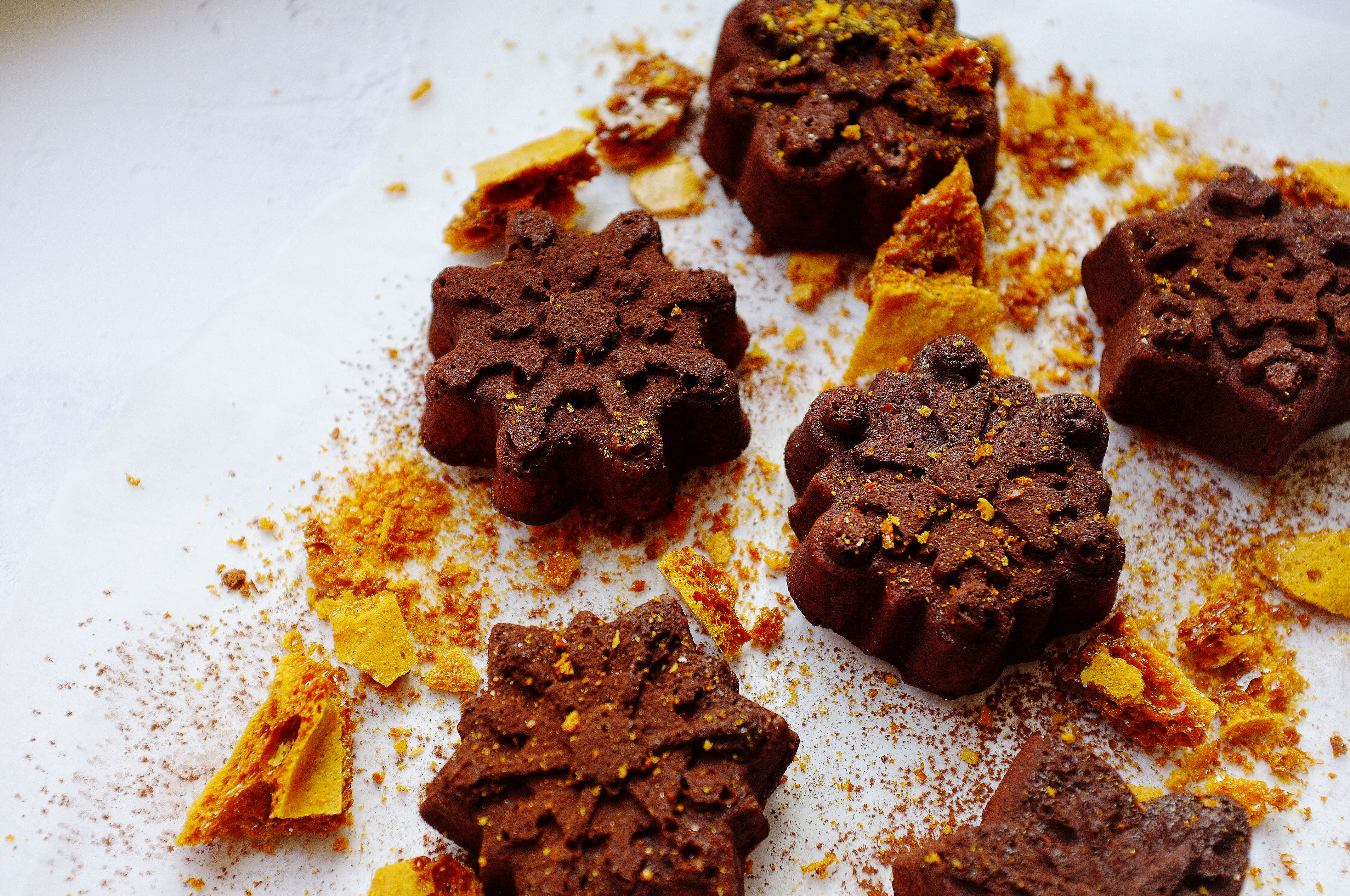I’m not usually one for novelty shapes but when Nordic Ware sent me a six hole snowflake baking tin I couldn’t resist (it is Christmas after all). Chocolate fondants never fail to make me happy so I thought a simple festive twist on the classic melt-in-the-middle puddings was in order; the snowflakes themselves taste predominantly of dark chocolate, spiked with a little clementine zest, but the honeycomb really makes for a well rounded dessert full of flavour and texture. Add ice cream too for optimum indulgence.